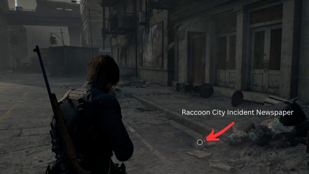 You’ll be prompted to head to Raccoon City Center. A Report on the Raccoon City Incident is automatically added to your Files. Take just a few steps forward and check the right side at the edge of the road to find the Raccoon City Incident Newspaper.