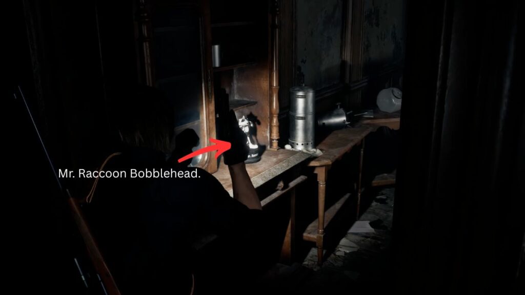 There isn’t much else in the immediate starting area, so keep moving forward. At the main intersection, take a right. On the left side, you’ll see an entrance to Cafe. Head inside and check the wooden cupboard to find a Mr. Raccoon Bobblehead. In this area you will see another door which leads to the kitchen in which you will find Scrap.