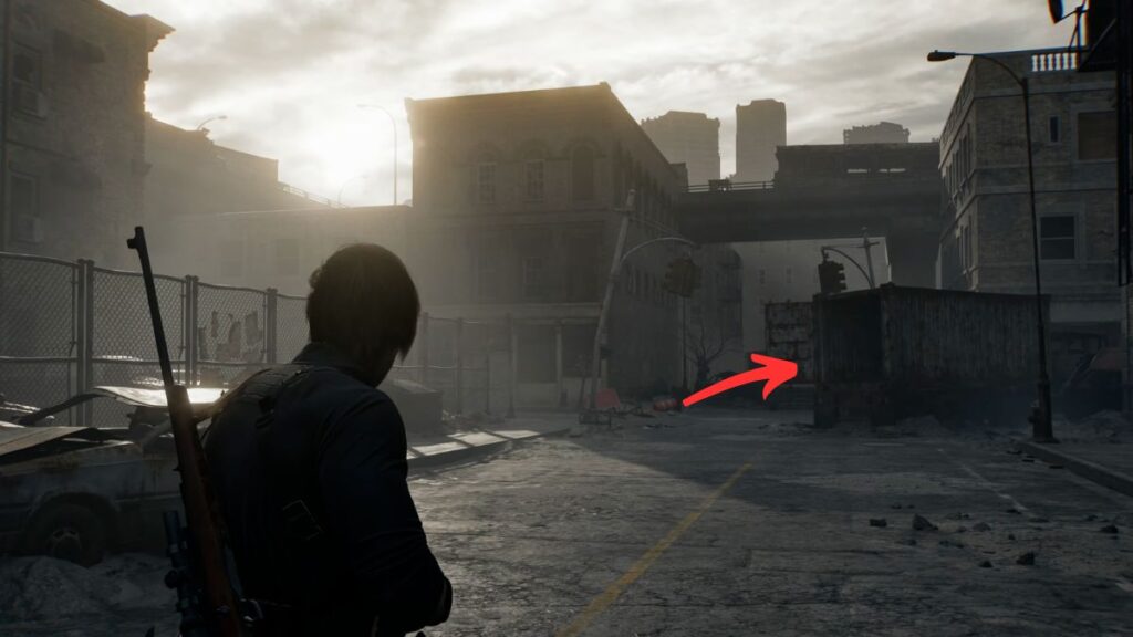 With the perimeter blockade standing between Leon and the city center, the next objective is clear: track down all three missing detonator parts to blow the gate open.