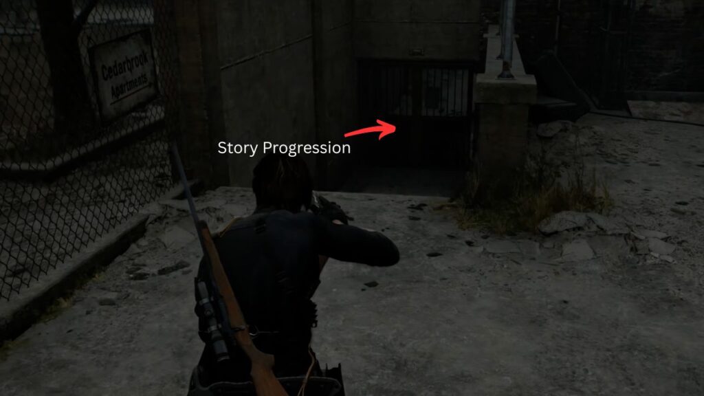 You’ll land in Ridgewood Station and need to get back up to the streets. Jump onto the platform and head up the stairs. On your right, you’ll find a turnstile gate; interact with it to pass through to the other side. Continue forward to another door and use your Hatchet to break through it. Climb the stairs on the other side to reach street level.