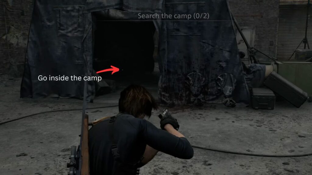 In the right corner of the tent, you’ll find a supply box with a Tactical Tracker on top of it. This device lets Leon earn credits by recording combat data, which can then be spent on weapons, upgrades, and ammo. Before leaving the camp, check the crate outside for Handgun Ammo and Shotgun Shells.
