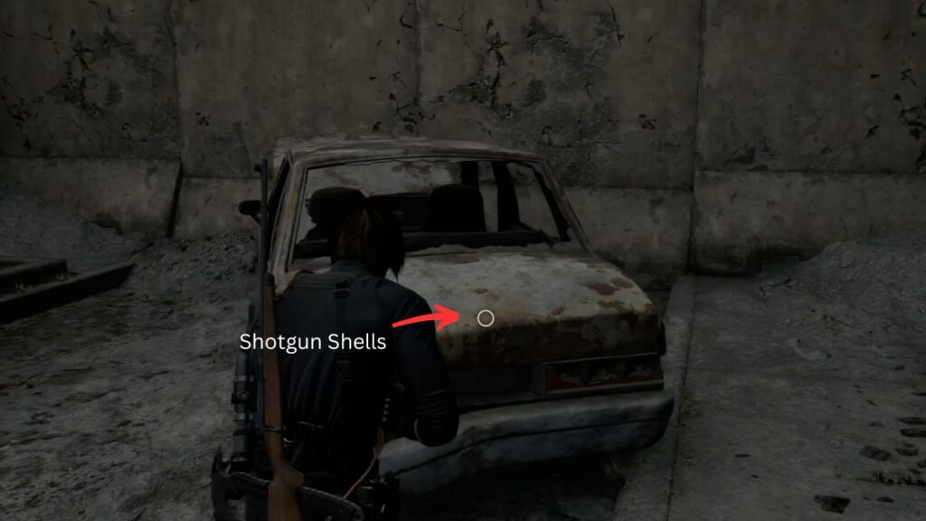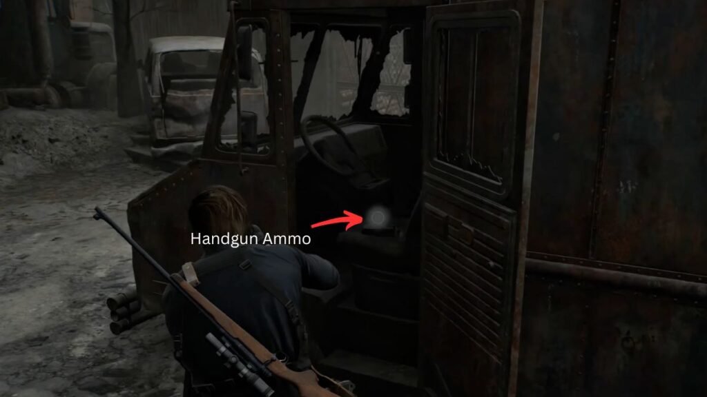From the gate, take the right. After you come to an intersection, go to the extreme end to find a rusted car, open it’s trunk to find Shotgun Shells. On the left side, check the rusted van for Handgun Ammo in the driver’s seat. After you have collected these on the right side of intersection look for a Blue camp and head towards it.