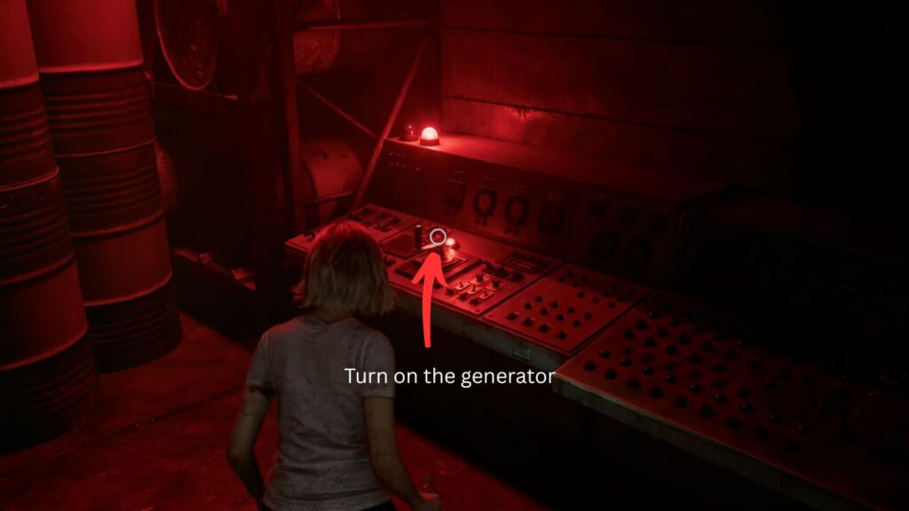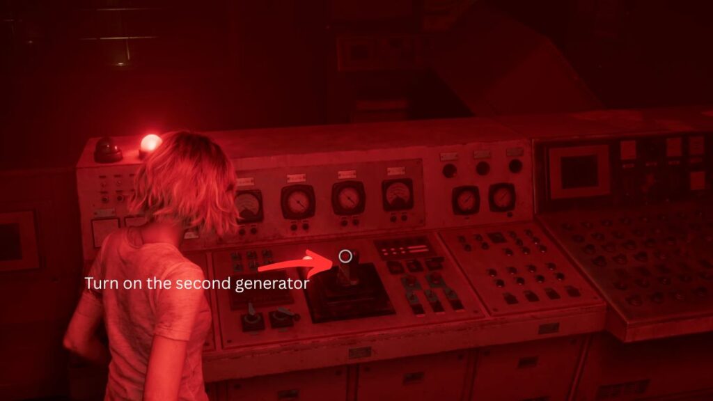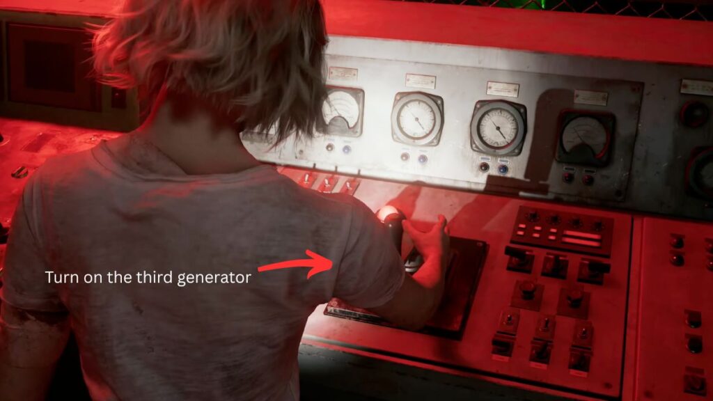 Generator Three: Exit the room and follow the right path all the way to the end, then take a left. In this area, you’ll spot a floodlight; keep its location in mind, as you’ll need it in a moment. Continue to the right at the far end to find the final generator panel. When you try to activate it, the lever will jam, and the Girl will ambush you again. Break away and run back to the floodlight and switch it on to stun her. With the Girl temporarily blinded, rush back to the panel and turn on the third generator.